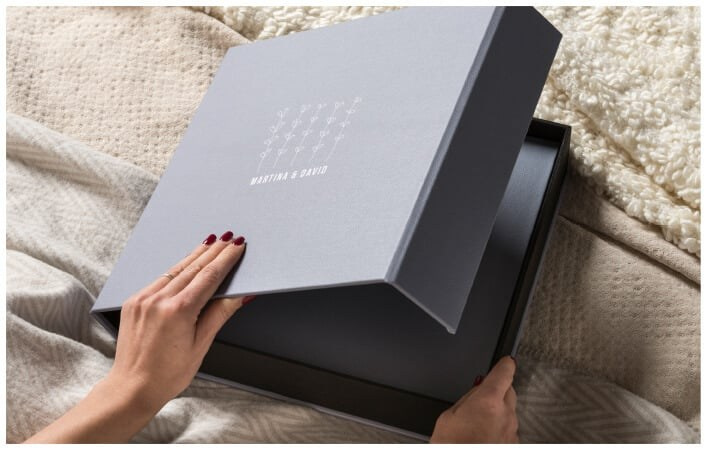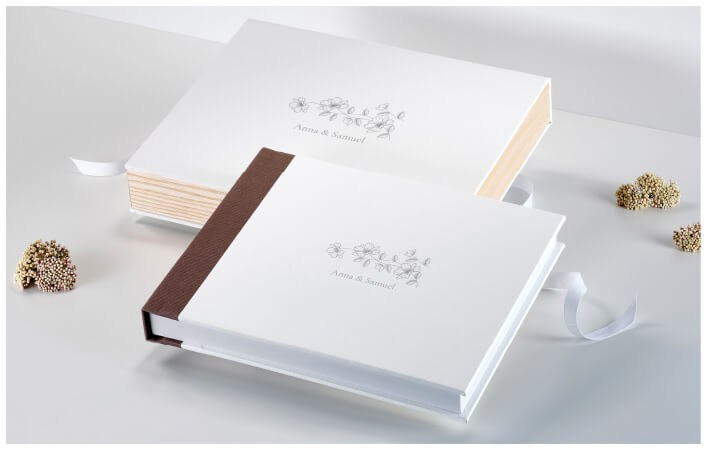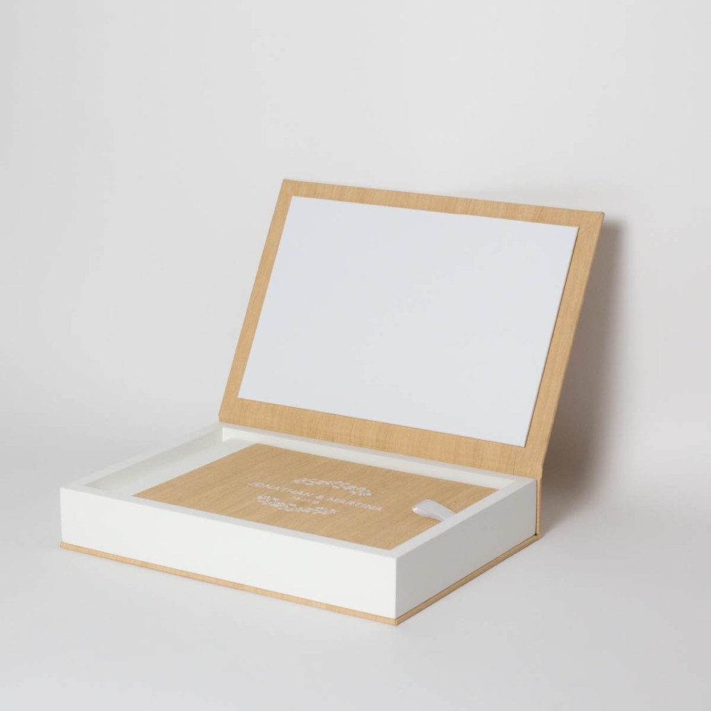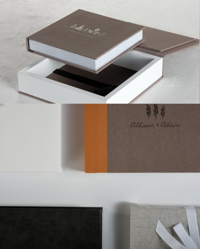 Tonalità naturali, materiali piacevoli al tatto modellano un fotoalbum e un cofanetto pensati su misura per le giovani coppie di sposi che amano distinguersi con originalità senza rinunciare allo stile.